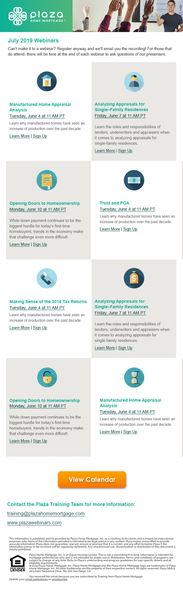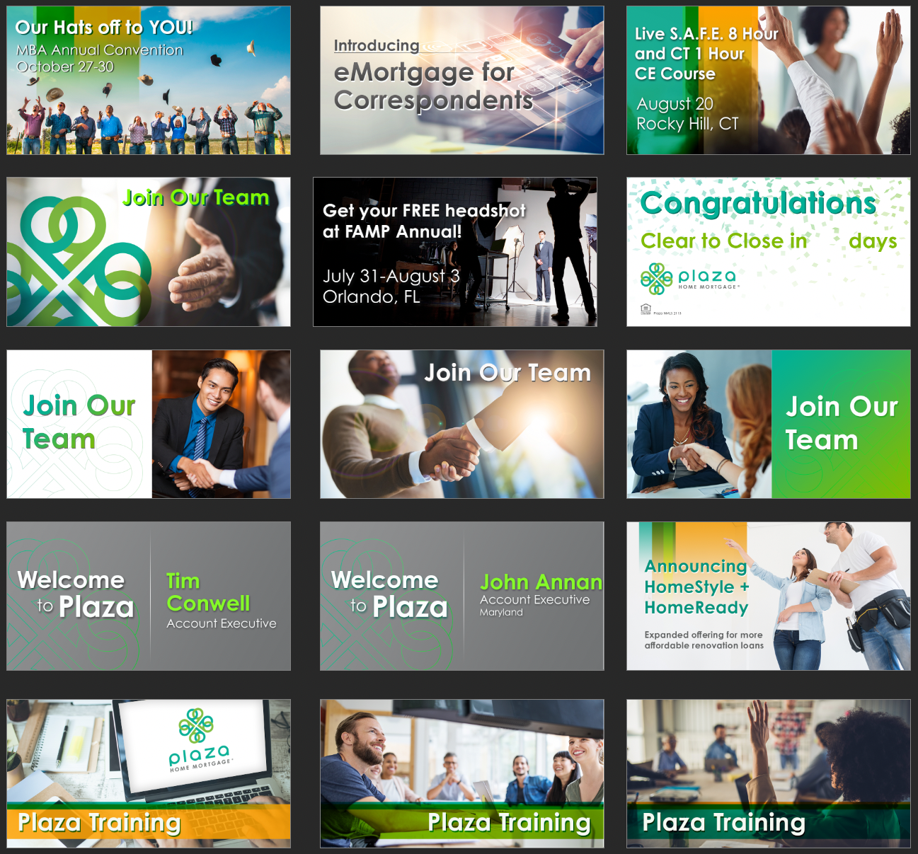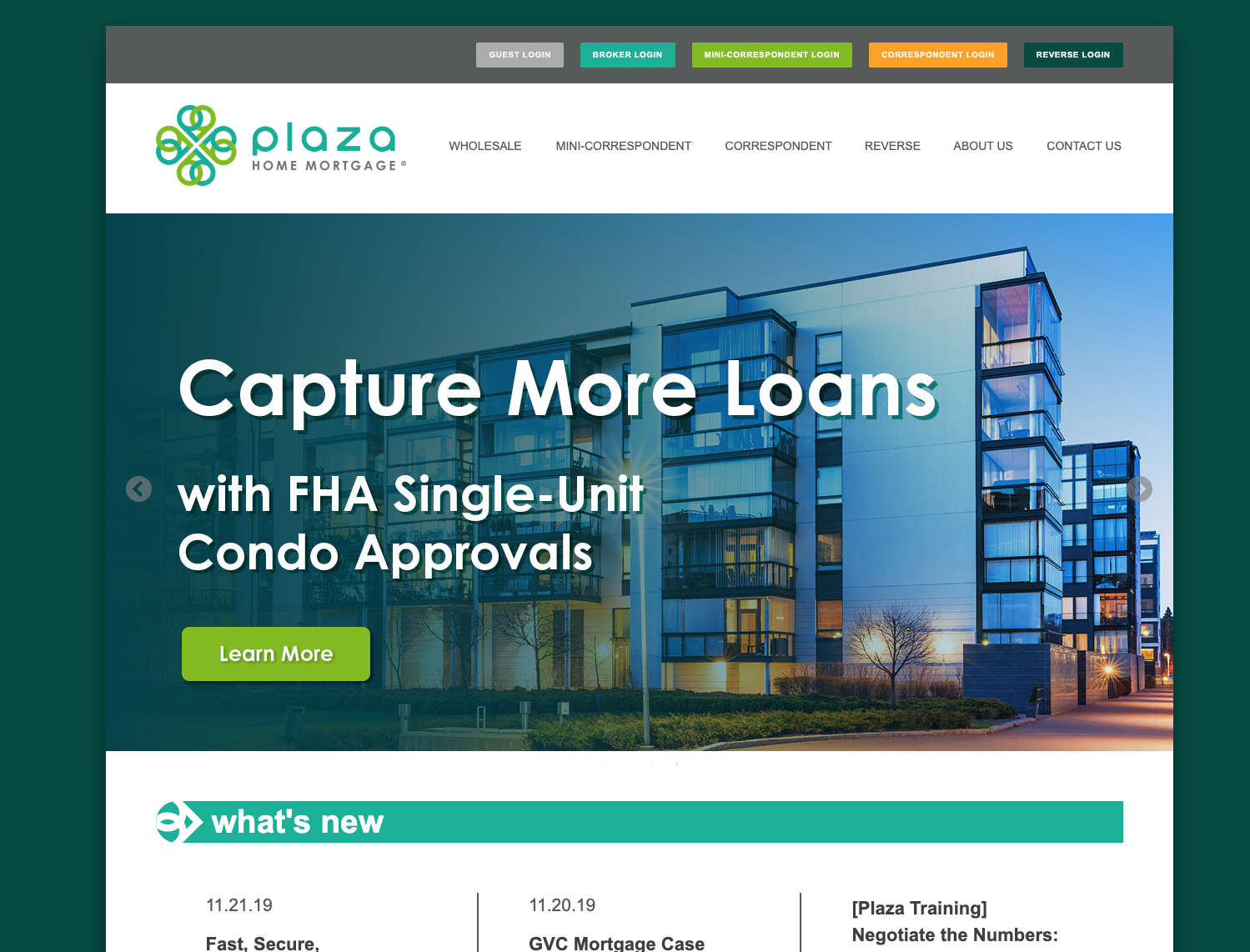 In December of 2018, Plaza Home Mortgage sought to refresh their brand from the ground-up using a fantastic new logo and icon created by legendary fashion and movie logo designer Tim Girvin. I was brought on and presented with an opportunity to take Mr. Girvin's fantastic logo and expand upon it, adapting and evolving it into every visual channel of the company. Step 1 for me was the refresh of the company's brand guide, which I used to define the company's new vision for key brand principles like color usage, typography, logo usage, and the company's key brand messaging. From there, these principles were rolled out into a comprehensive visual package I developed which included Plaza's main website, intranet, sales flyers, social media graphics, email templates, internal initiatives, and more.