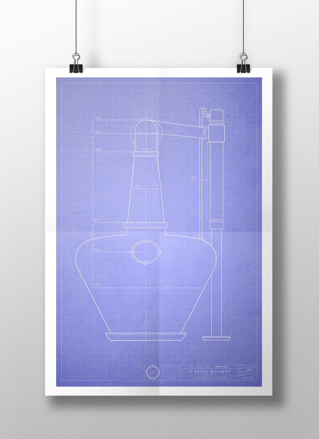 To celebrate my friend’s 40th birthday (a craft cocktail connoisseur) I created this “50s-style blueprint” pot still illustration for his home bar. First, I gathered inspiration from a variety of different eras of architectural blueprints and whiskey pot still design. To execute, I used a combination adobe illustrator for the line art and “label” of the pot still and photoshop to add texture, grain and age to the final, printed poster seen below. This was a fun one!